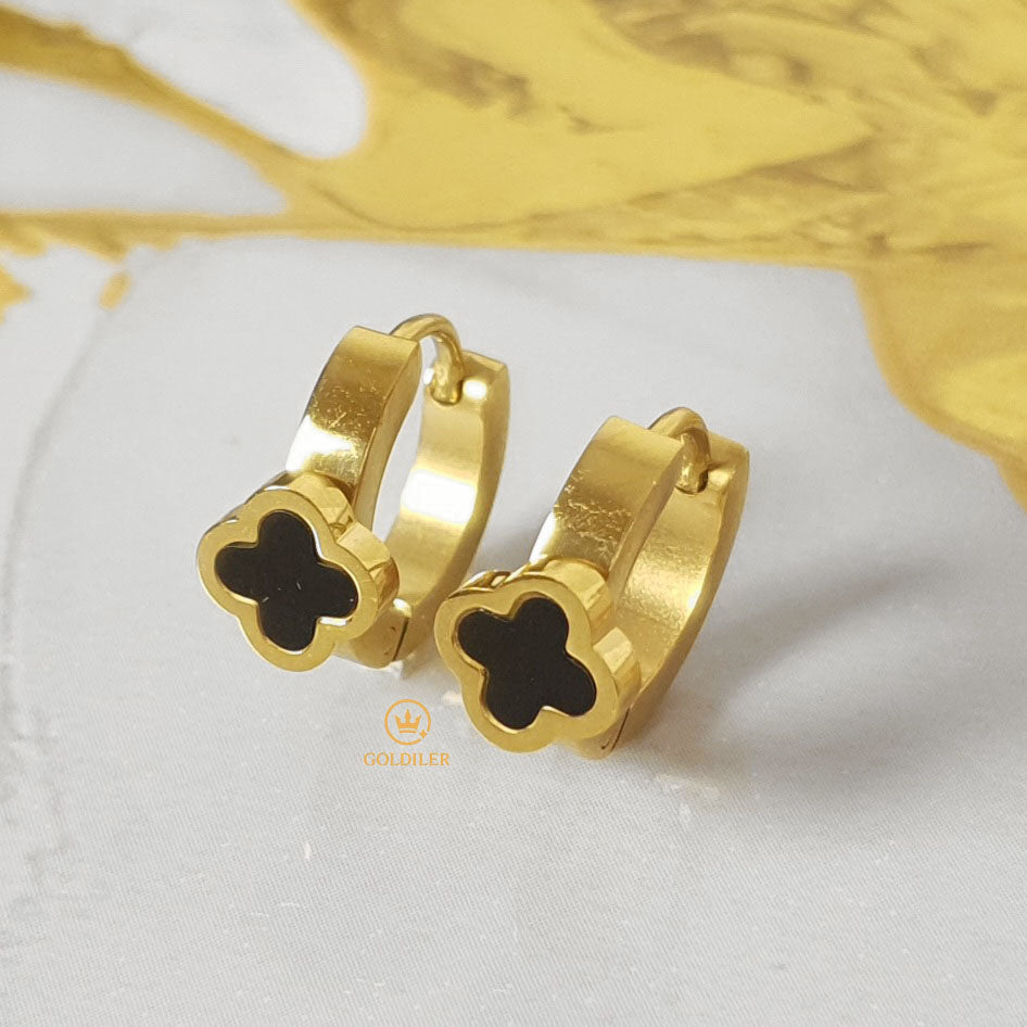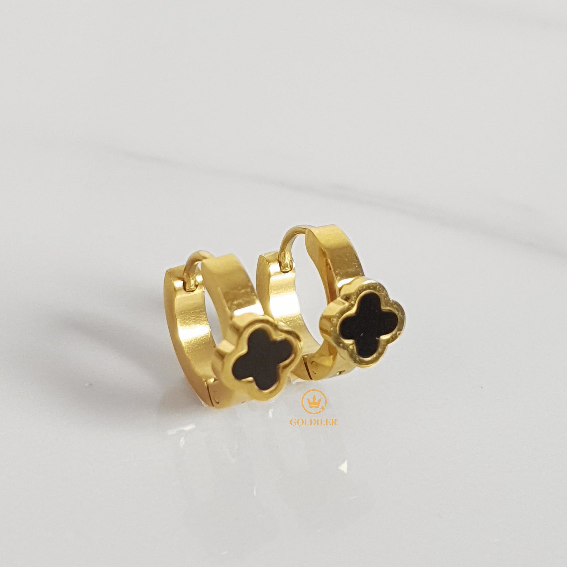 Un diseño clásico que se transforma en sofisticación pura. Estas candongas en oro laminado resaltan con delicados tréboles negros, creando un contraste elegante que aporta fuerza, estilo y personalidad única a tu look.