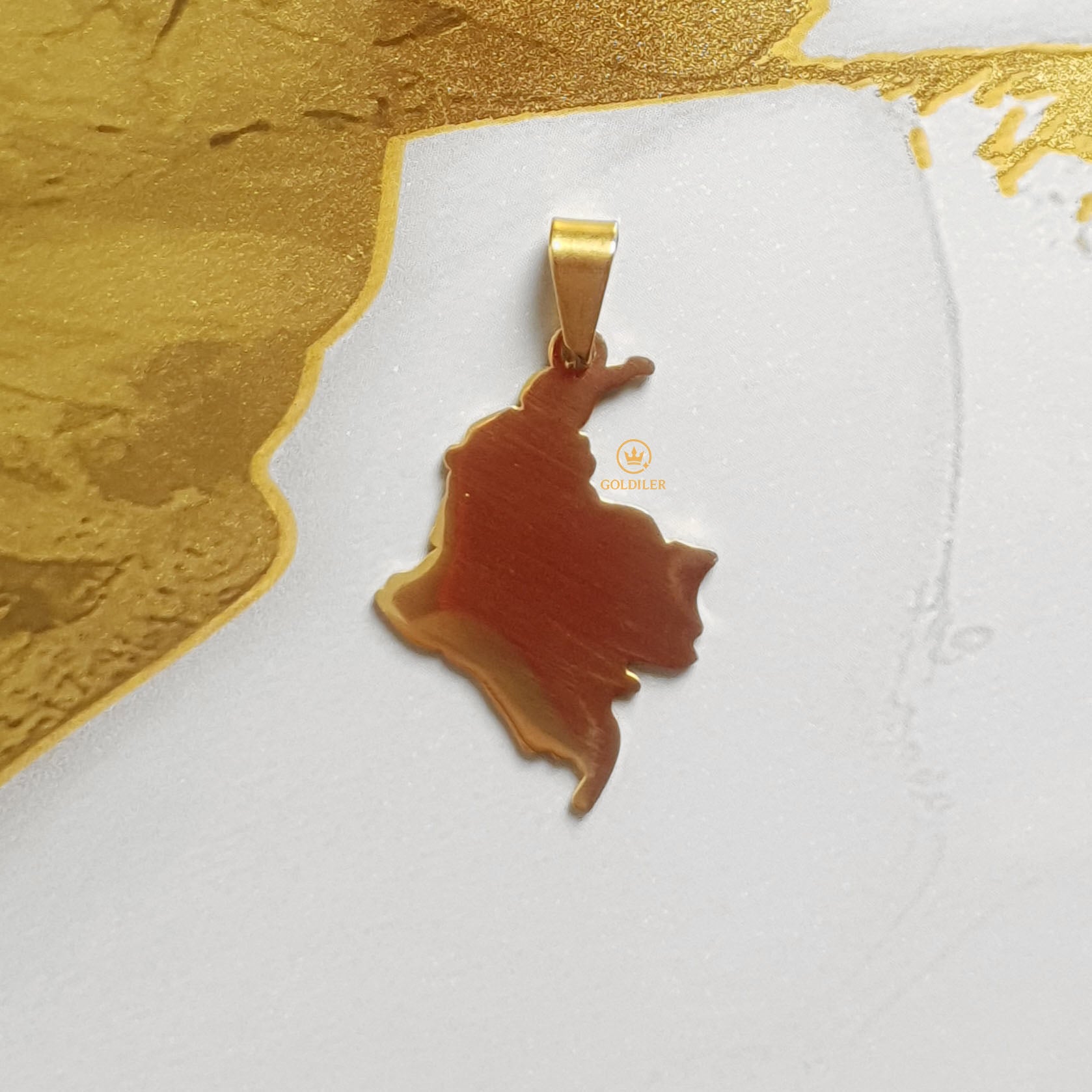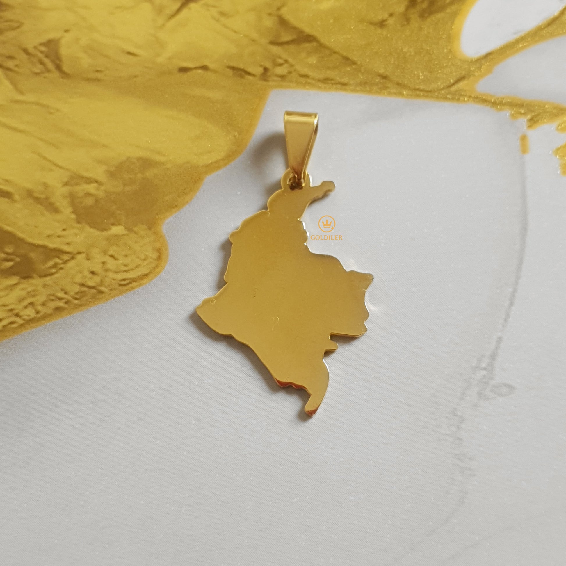 Luce tu amor por Colombia con esta joya sobria y significativa. Su diseño minimalista y elegante en oro laminado captura la silueta del país con un brillo que habla de raíces, identidad y orgullo nacional.