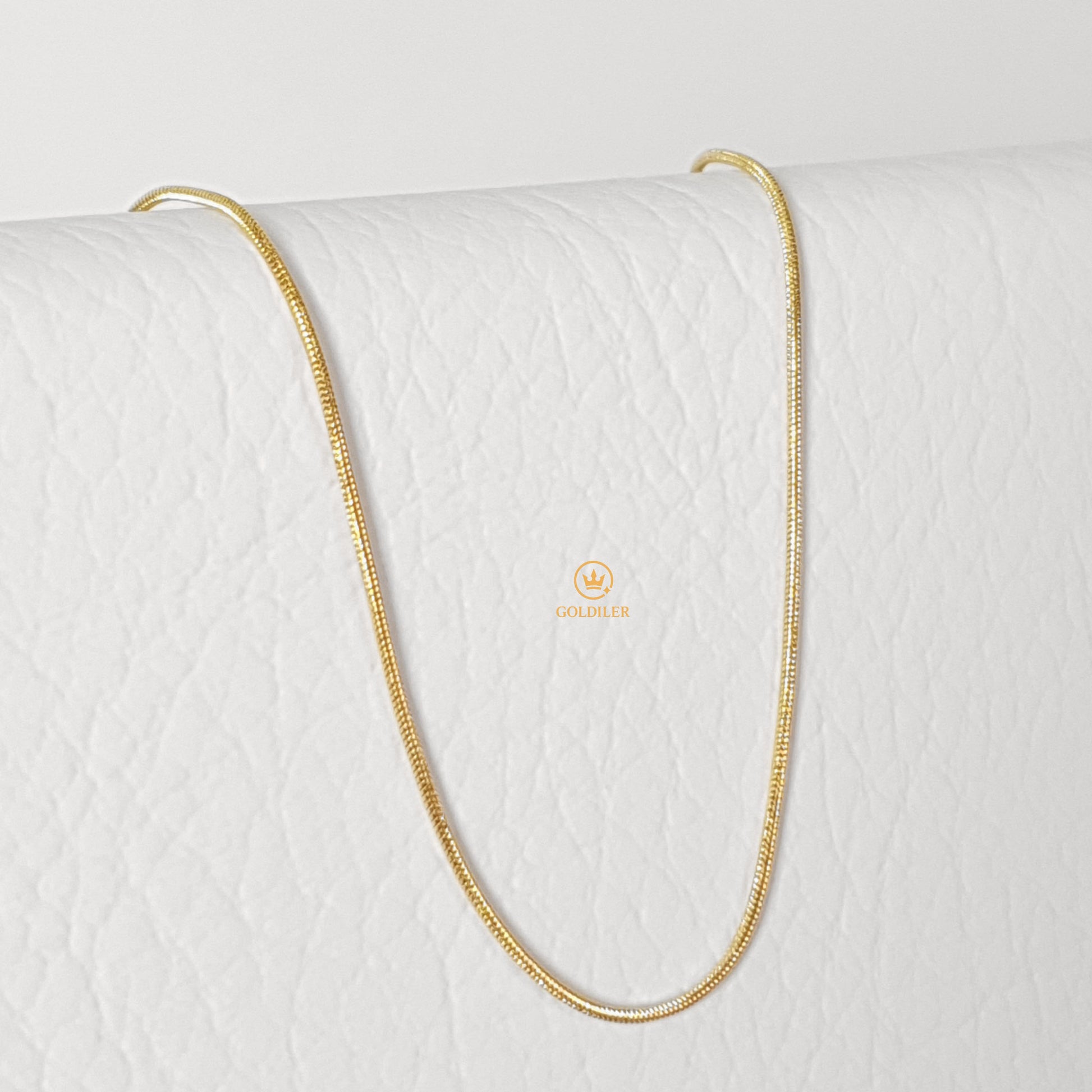 Sutil, elegante y sofisticado. Este delicado hilo de oro laminado es la elección perfecta para quienes buscan un accesorio minimalista pero con un brillo que atrae todas las miradas. Su diseño fino lo convierte en una pieza versátil: ideal para usar sola con un look elegante o acompañarla con dijes para darle un toque único y personal.