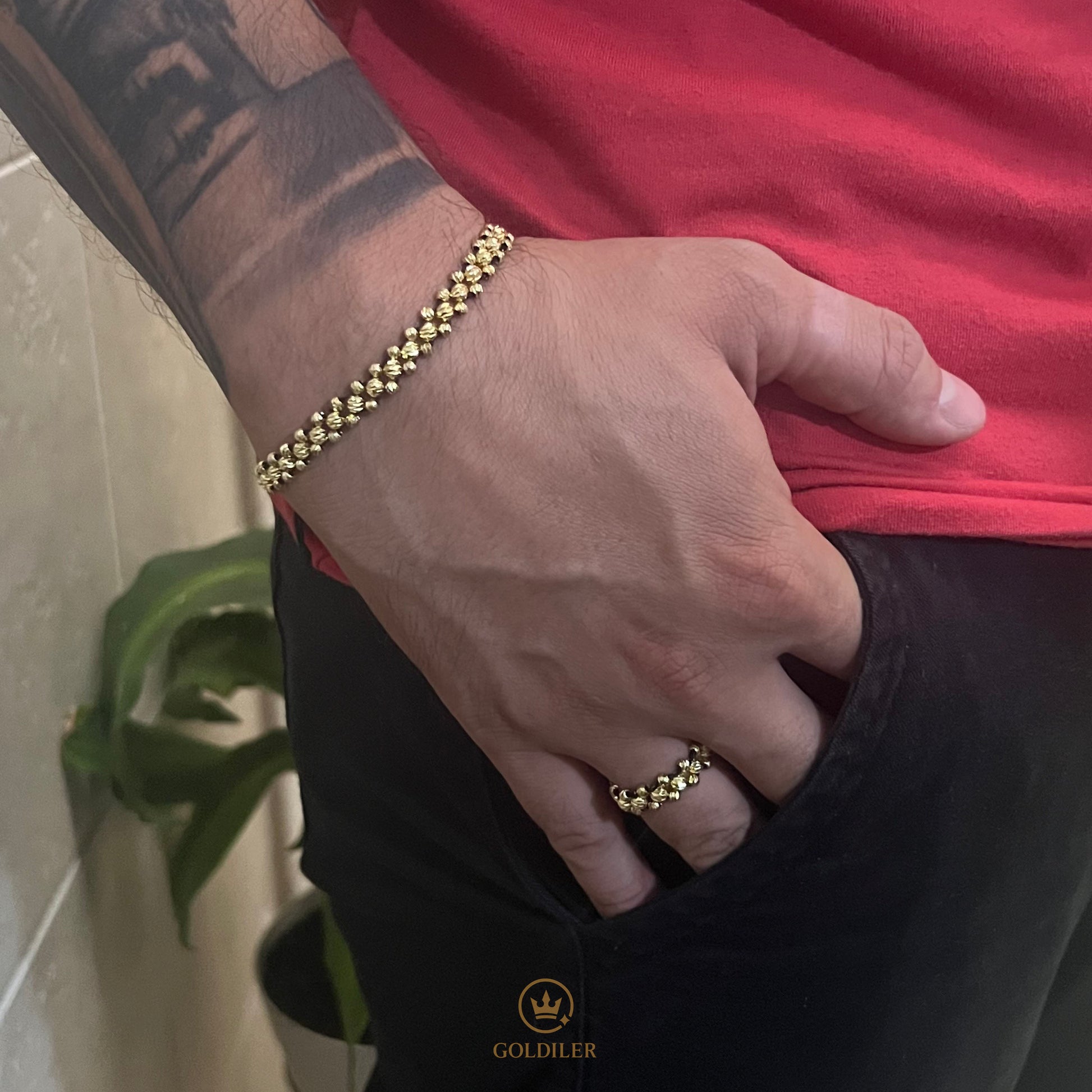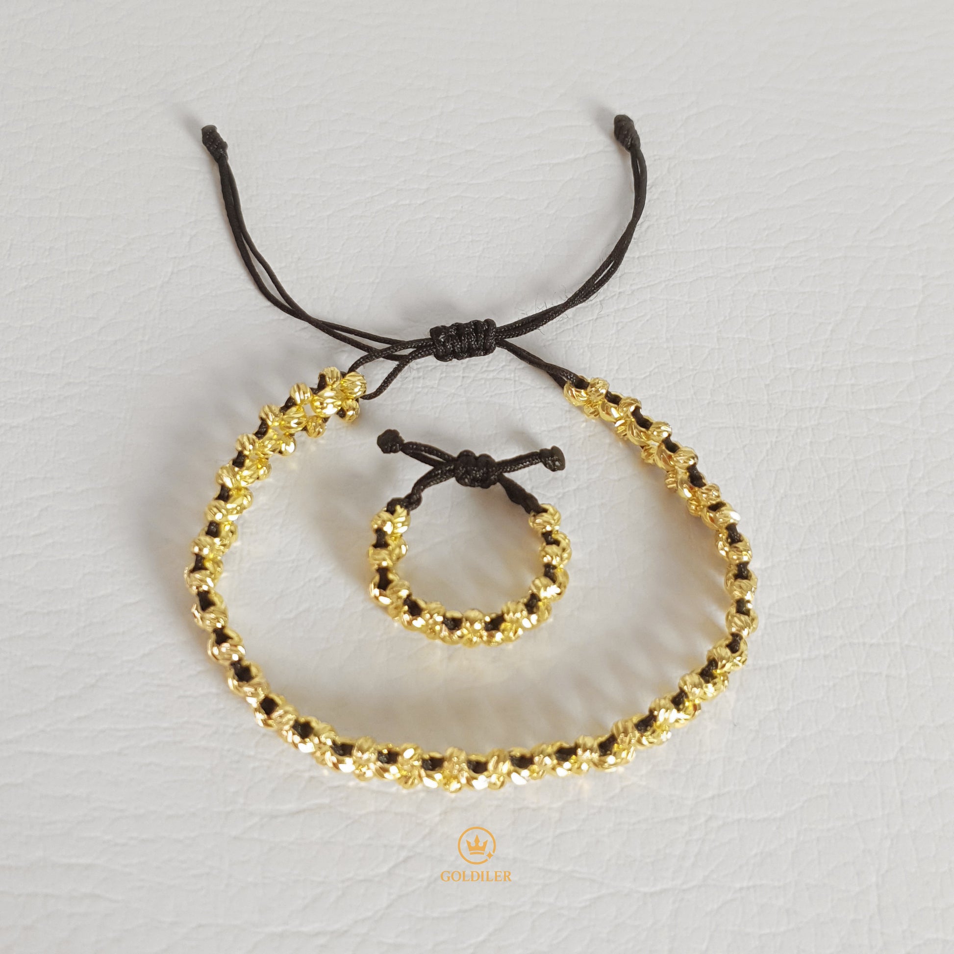 Elegancia y brillo en un solo set. Este combo está compuesto por una manilla ajustable y un anillo a juego, ambos diseñados en estilo tres carriles con acabados en oro laminado. Su diseño tejido y brillante resalta a la perfección en cualquier ocasión, aportando un toque moderno y sofisticado. Ideal para uso diario o para regalar.