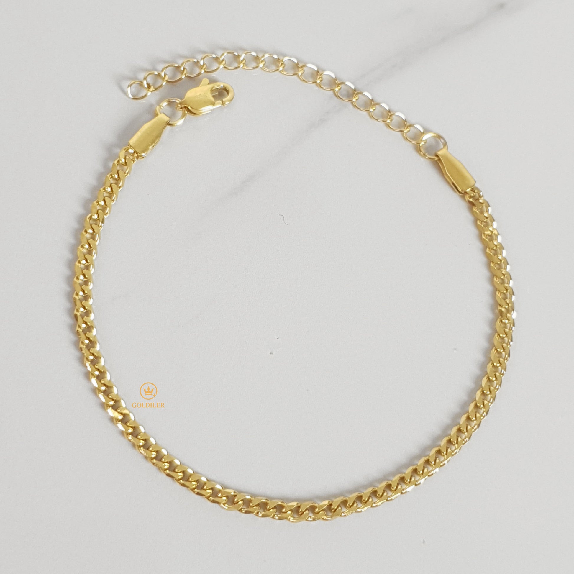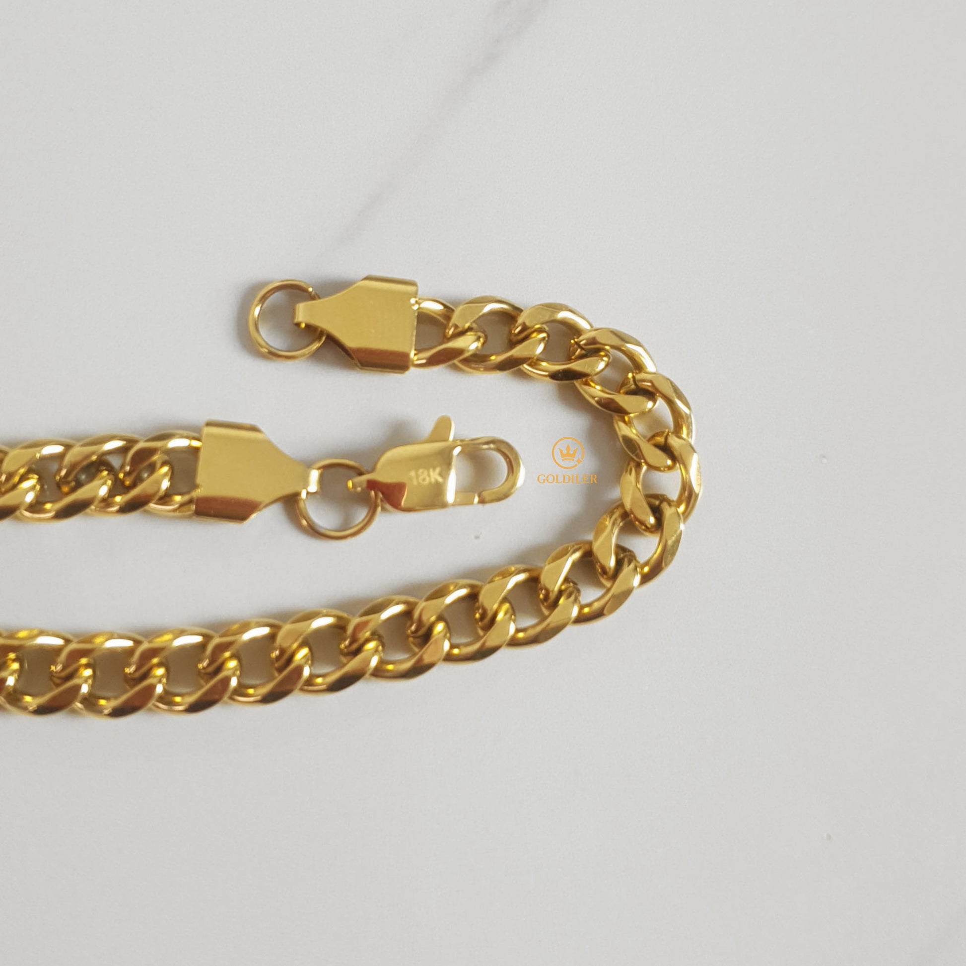 Imponente, refinada y con carácter. Esta pulsera cubana en oro laminado es más que un accesorio: es una declaración de presencia. Su diseño clásico de eslabones planos destaca por su firmeza y brillo intenso, ideal para el hombre que deja huella donde va.